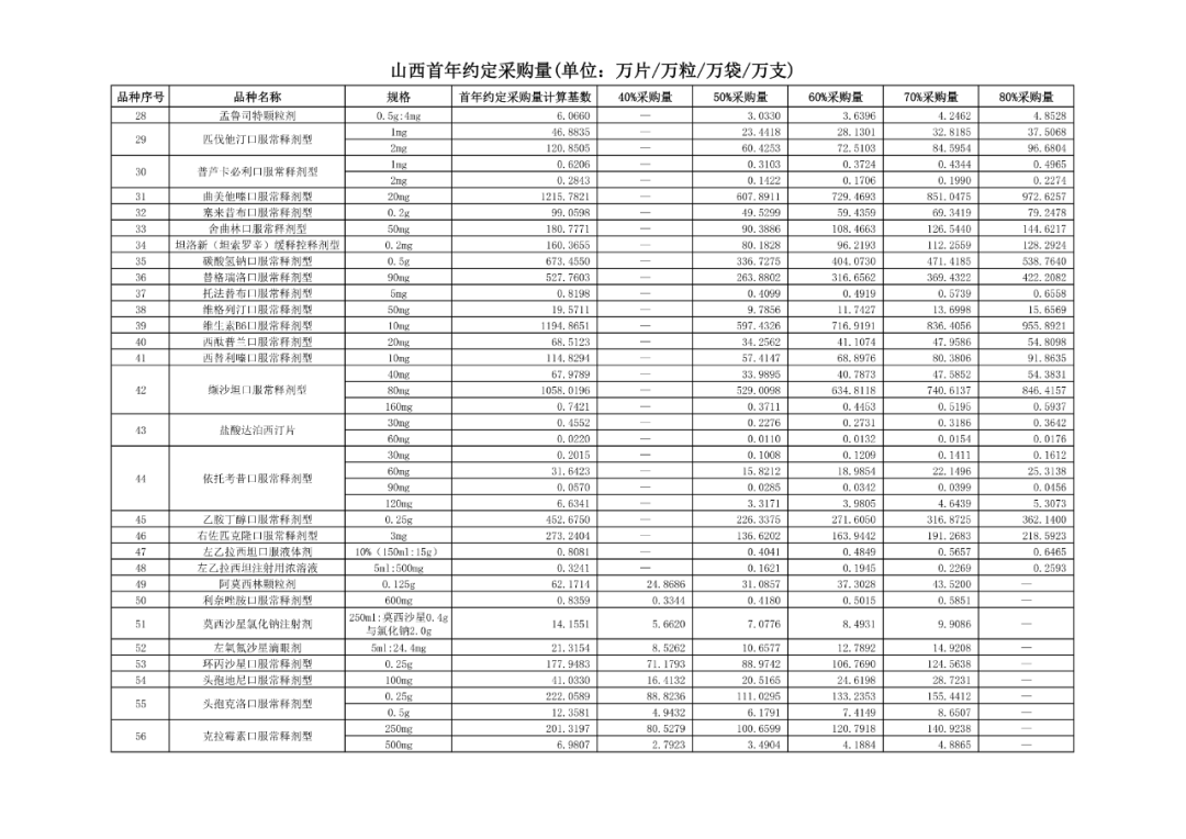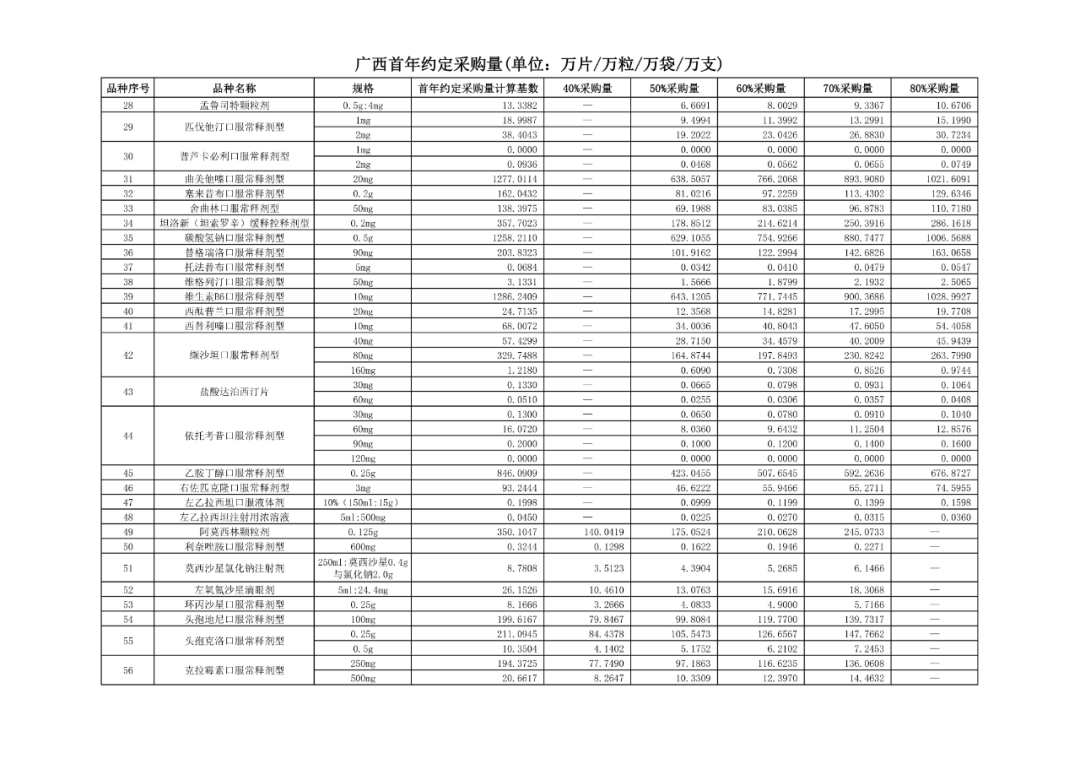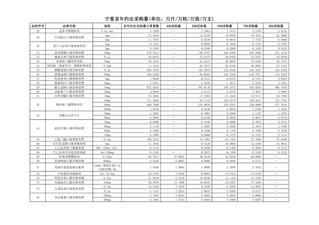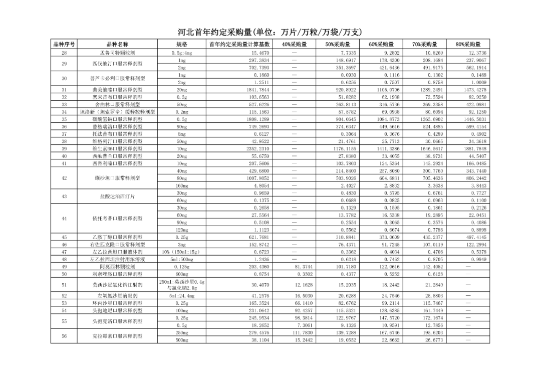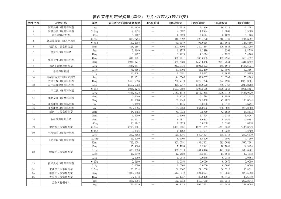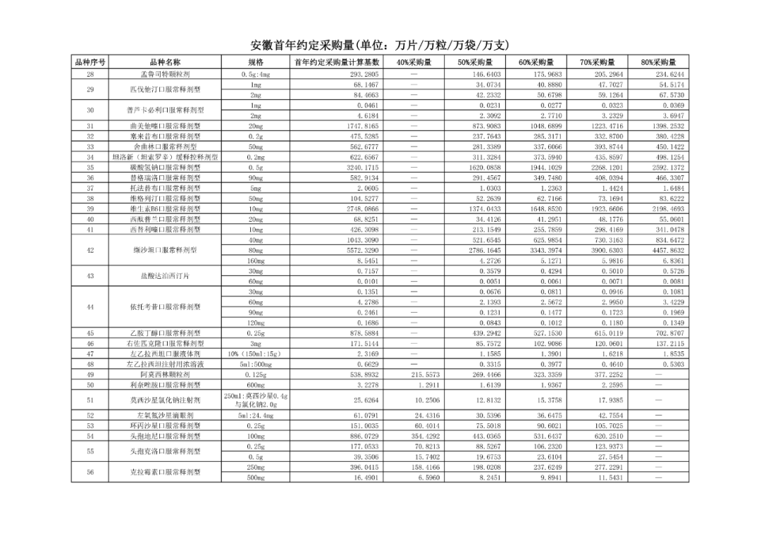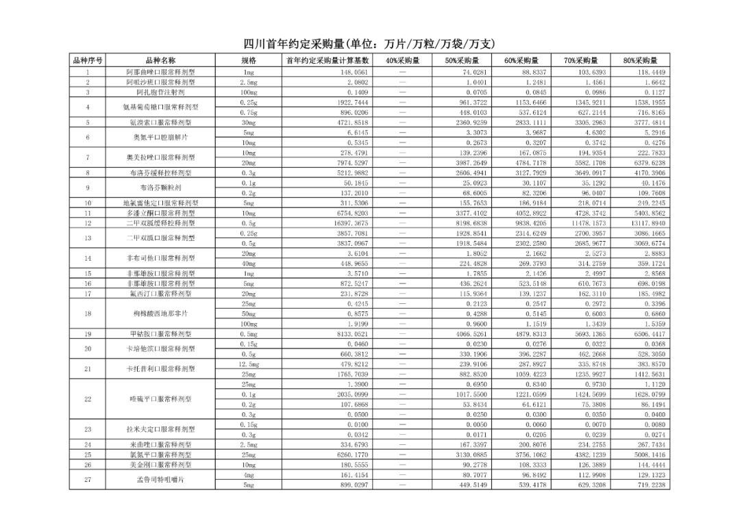 全國實際中選企業(yè)數(shù)為4家及以上的,為首年約定采購量計算基數(shù)的80%。