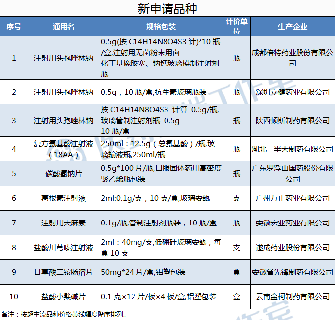 非新申請藥品(指2018年9月30日前已有統(tǒng)編代碼的藥品)的黃線有3條: