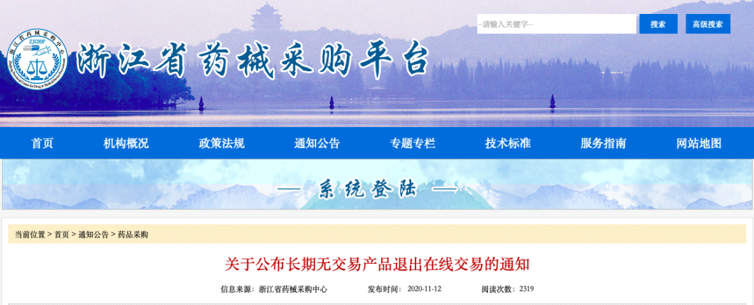 11月12日,浙江省藥械采購平臺發(fā)布《關(guān)于公布長期無交易產(chǎn)品退出在線交易的通知》。